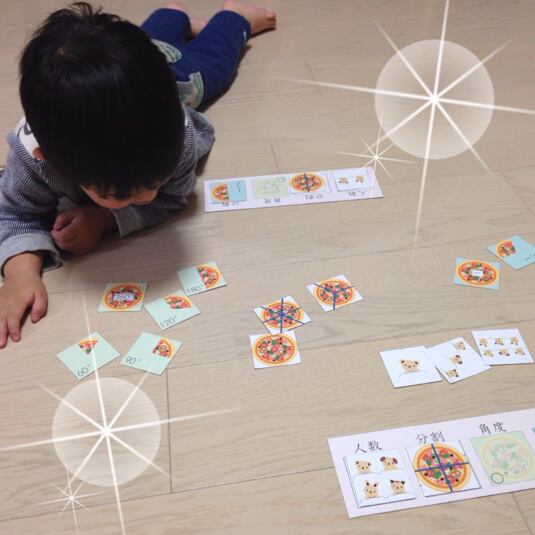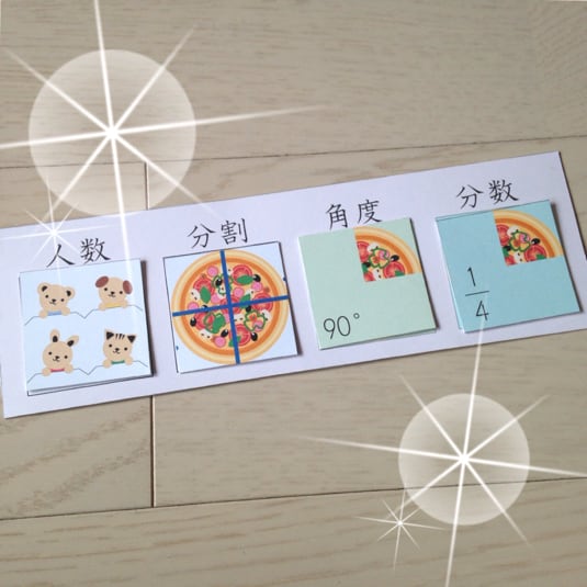 ・分数と角度の絵は同じなので同じ絵探しあそびも可能。